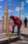 installé pour une fois sur la digue pour cause de marée haute. Les projecteurs